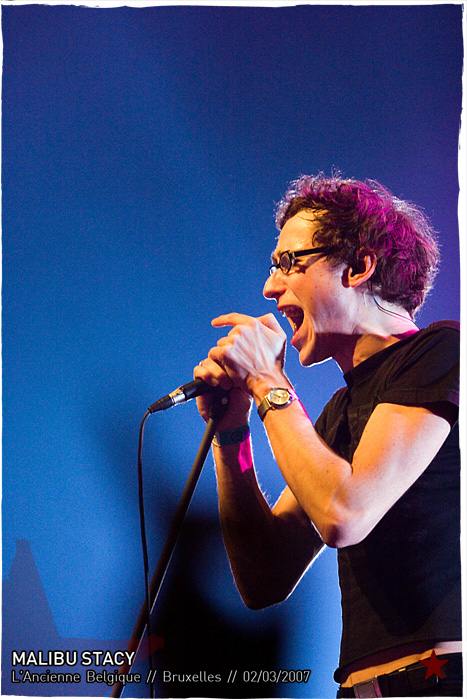 Bref, dans une Ancienne Belgique2 pleine de Wallons ― et de Jup’ ―, Malibu Stacy démarre bien mais c’est à partir de Los AnGeles, single longuement réclamé, que vraiment tout le monde se déchaîne. Derrière le chanteur, J lâche régulièrement son clavier pour aller se balader avec un tambourin, un peu à la Brian Jonestown Massacre ― mais avec moins de poils ― et se fait marcher dessus une paire de fois. Y a du slam, un peu, des cris, beaucoup, de la folie furieuse pendant Sex In Malibu, entretenue par Peniche Praia et par les chœurs vociférants de Walk Like An Egyptian, reprise des Bangles. La soirée se termine dans le bordel allumé VHF-UHF, parti et achevé en vrille. Séduisants sur disque, Malibu Stacy font mieux en live : ce soir ils concluent.