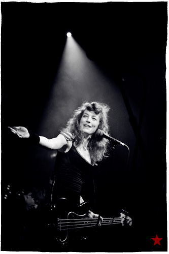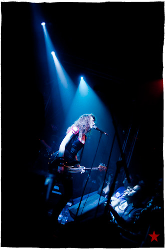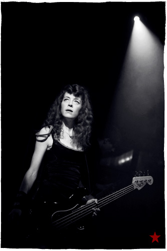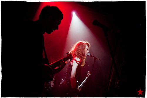 Ça fait toujours bizarre de retrouver ici des artistes qu’on avait pas vus depuis là ; surtout quand le là en question fut la remorque d’un camion partagée avec Muse sur le fond d’un parking de Clarkston, Michigan, il y a bien longtemps. Tellement longtemps, en fait, que maintenant que ses aventures avec Smashing Pumpkins et Hole sont bien loin et qu’on a presque oublié l’apparition de la grande rousse sur le Grand Secret d’Indochine en 2002, on s’attendrait à une Flèche d’Or presque vide. C’est compter sans la première partie ― déjà terminée quand je me pointe ―, Toybloïd1, le groupe de la Lou Sirkis, fille et nièce de. D’où la Flèche blindée et moite, d’où le premier rang juvénile. D’où la série de photos entièrement prise du même angle.