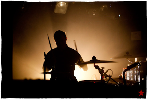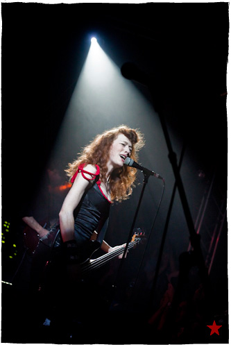 Auf der Maur débarque derrière la longue ― trop longue ― projection d’un film que faut avoir pris de la drogue pour l’apprécier et lâche un set à base d’instrus très longs et de morceaux incisifs, lancinants et lourds lancés la basse en avant et entrecoupés d’interventions rigolotes. Une soirée conviviale, qu’on pourrait dire, surtout en voyant la maîtresse de les sons distribuer ses bouteilles de flotte dans le public comprimé et desseché. Sympa. Rayon fausses notes on trouvera Taste You, l’affreuse bouillie franco-anglaise à l’accent qué***ois dégueulasse qui fait vomir qu’on pensait avoir oubliée, et la grande blague du management qui vire les photographeux à la moitié du show parce que « vous comprenez c’était que pour trois morceaux ». D’où la série de photos qui n’en comporte que sept ; du même angle c’est pas très grave, notez.