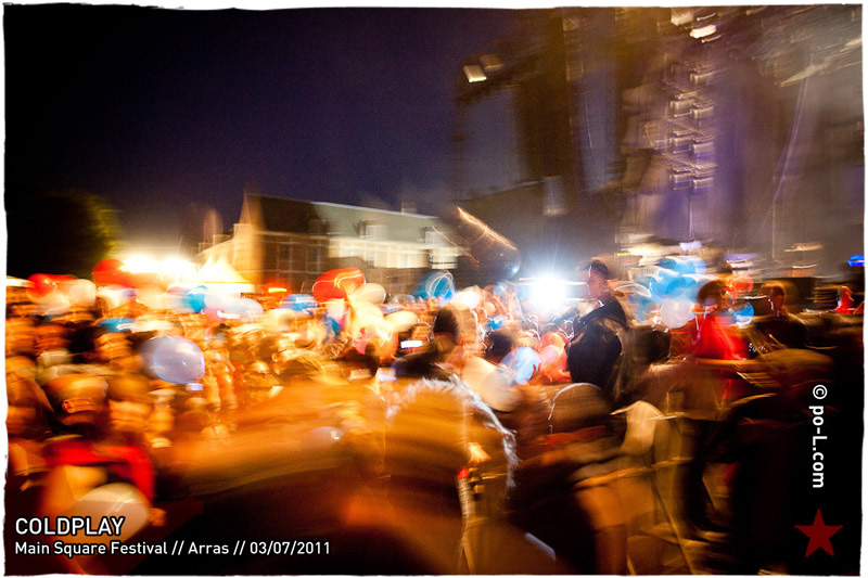 le Main Square Festival, un lapin qui craque et cette irréelle nuée de ballons et d’écrans de téléphones qui précède l’entrée en scène de Coldplay ;