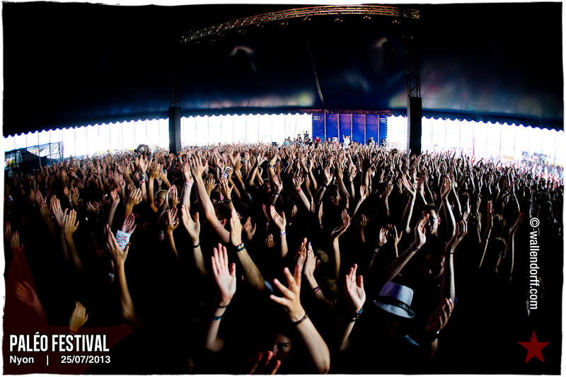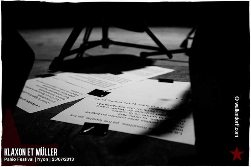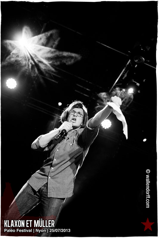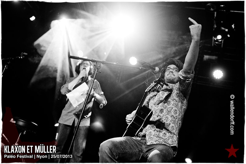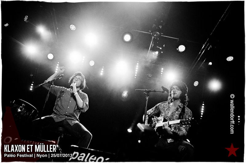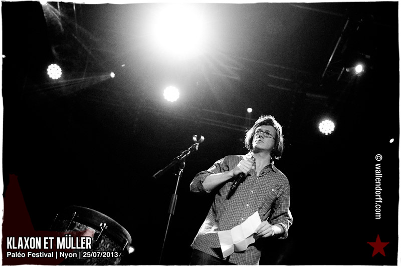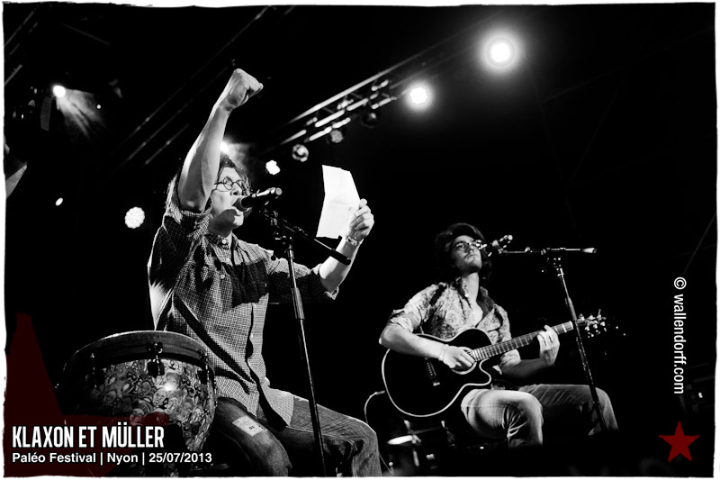 Après Black Lion Genocide l’année dernière, c’est Klaxon et Müller qui retournent Paléo avec une prestation unique de 20 minutes, point culminant d’une journée marquée par le show dingue de Crystal Fighters trop à l’étroit au Détour, l’ambiance folle de Stupeflip et la découverte Kadebostany.