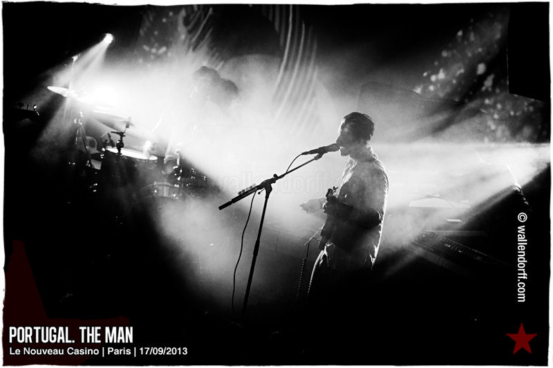La salle est blindée. Impossible d’atteindre le front de scène. Tant pis, autant poser le fotoapparat et regarder depuis le fond. Portugal. The Man démarre fort. Les titres sont plus électriques, plus épais, à l’image de ce dernier album décidément réussi. Le quartette déroule, enchaîne les morceaux en se regardant dans les yeux sans interagir avec la salle, acquise mais presque immobile. Il faut attendre la fin de Senseless, quand le bassiste Zachary Carothers glisse deux mots au public — un bonjour et un rappel que l’album est sorti au printemps — pour que le Nouveau Casino se réveille et clappe en l’air pendant Sea of Air. Modern Jesus marque une pause calme, puis Portugal. The Man termine plus fort avec un retour du Purple Yellow Red and Blue qui avait ouvert le set, suivi d’un rappel citant les Beatles. Conquis. Voilà un groupe qui, après être surgi de nulle part avec son nom incompréhensible et avoir enchaîné 6 albums honorables en 6 ans, décolle d’un coup après sa signature chez Atlantic, livre un Evil Friends (produit par Modest Mouse et sorti en mai) clairement un niveau au-dessus des précédents et, surtout, confirme sur scène. Il suffira qu’Atomic Man marche aussi bien que Tighten Up et nous tiendrons les successeurs des Black Keys au poste de nouvelle sensation indé rock. Rien que ça.