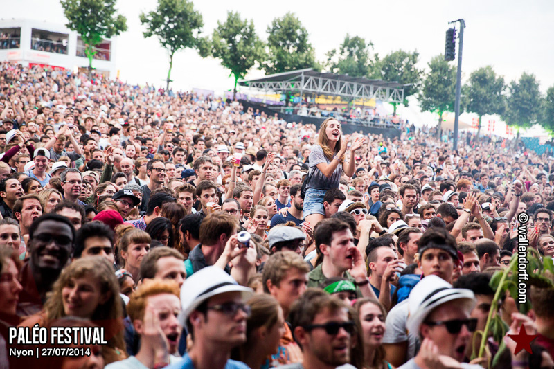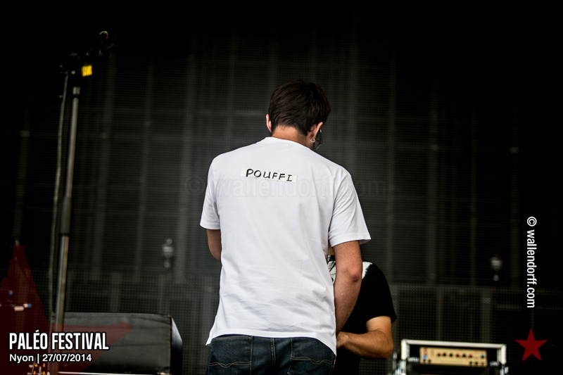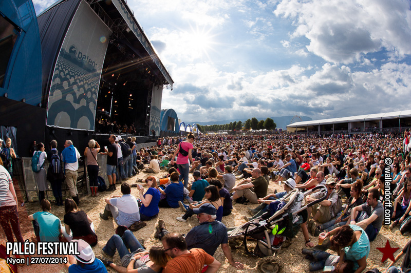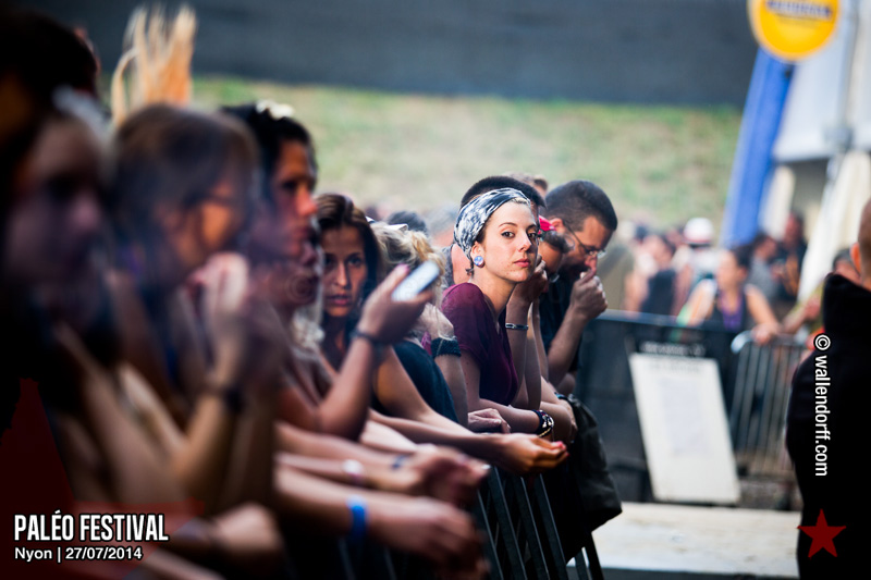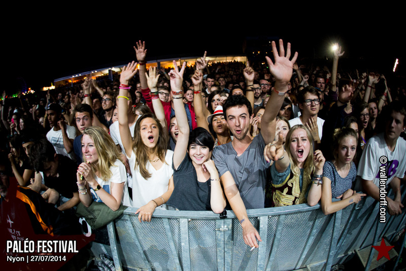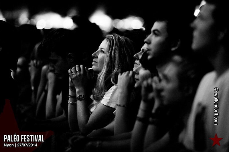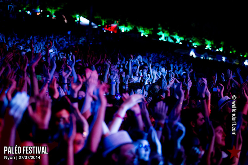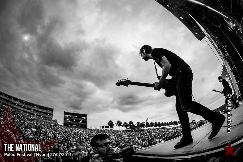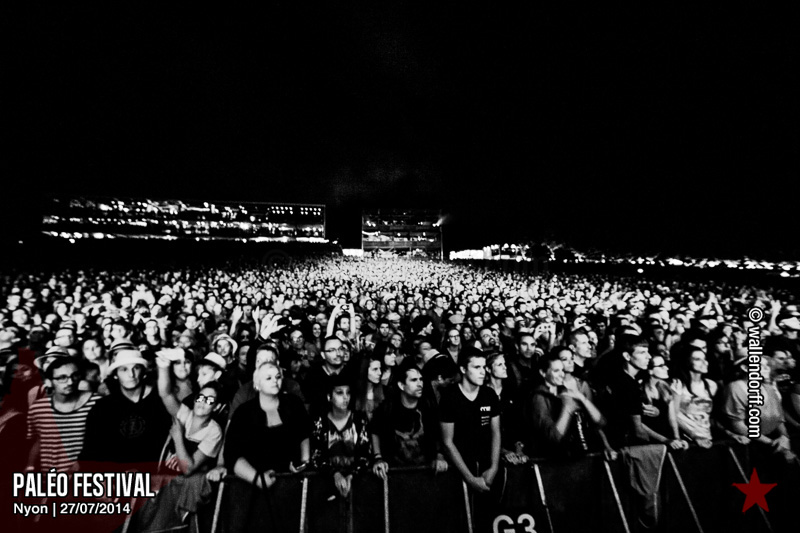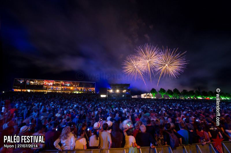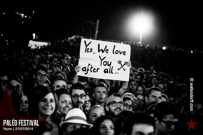 Le dimanche est toujours un jour à part. On vient plus tôt, l’ambiance est (encore) plus détendue et on traîne plus volontiers entre les concerts. Tinariwen a quelque chose de magique. Curieusement, Détroit se contente des Arches pendant que The National squatte la grande scène. Quoi qu’il en soit, Détroit ne déçoit pas et The National fait du National. Je sors de la fosse avec deux belles photos d’intention [ces photos qu’on voit mais qu’on ne peut pas prendre, pour une raison ou une autre. Elles sont expliquées dans ce lien, mais, honnêtement, je ne suis pas sûr de comprendre mon propre jeu] de Matt Berninger ; l’une quand il décide de ne pas renvoyer du pied le ballon Migrol que le public vient de lui lancer [il le jettera au lieu de ça en côté de scène, ce qui m’a fichtrement déçu] ; l’autre après la fin du troisième titre, alors que je m’apprête à rentrer dans le tunnel et qu’il vient pile à ce moment se mettre les bras en croix en bord de scène. Moche. Retour aux Arches, où Woodkid, attendu dans une ambiance électrique, lâche un set impressionnant. Puis le feu d’artifice, que je vois enfin dans de bonnes conditions après les loupés de 2012 et 2013. Placebo débarquent aussitôt, sans prévenir. Deux titres vite expédiés, et tout le monde au bar. Ce groupe vieillit mal. Paléo, lui, finit bien, comme toutes les bonnes aventures : dans la bière, dans les rires et dans la fondue.