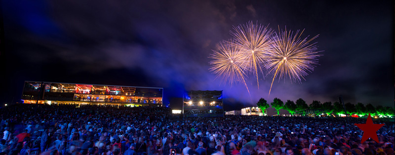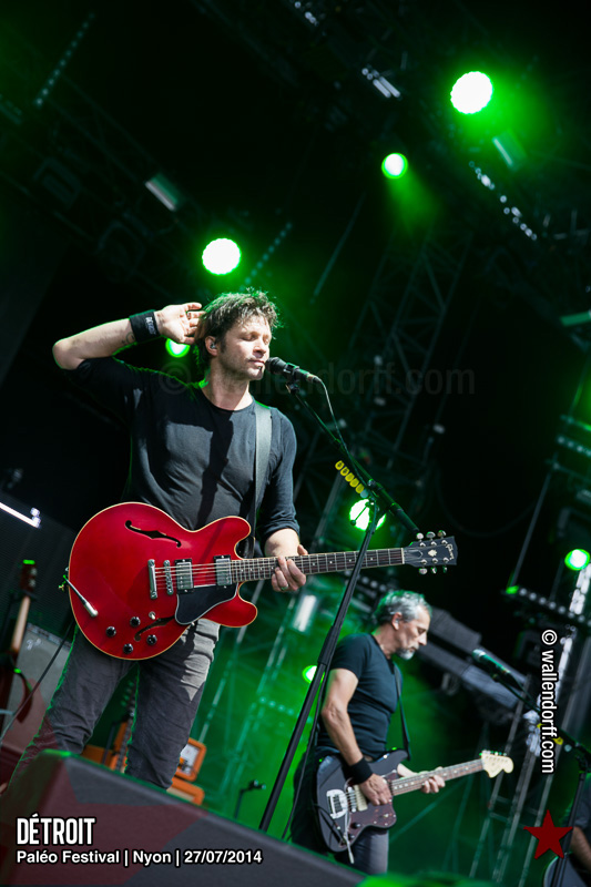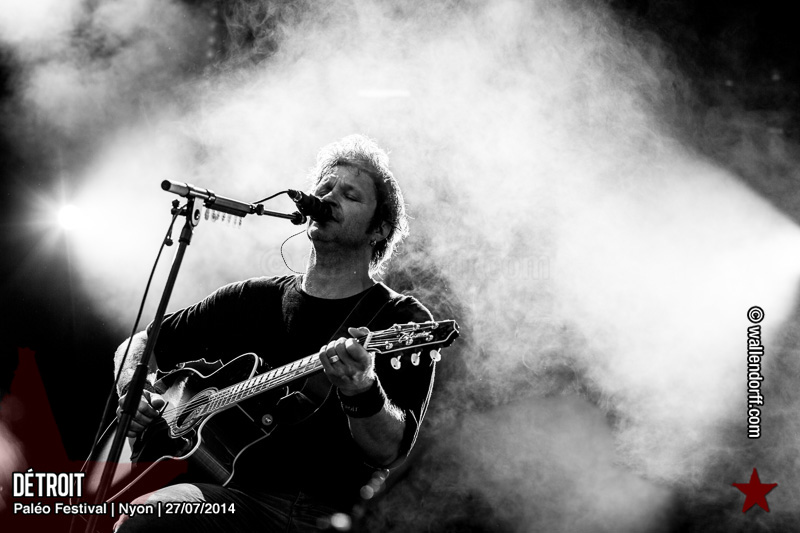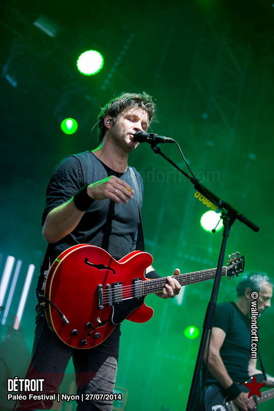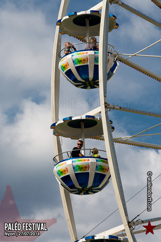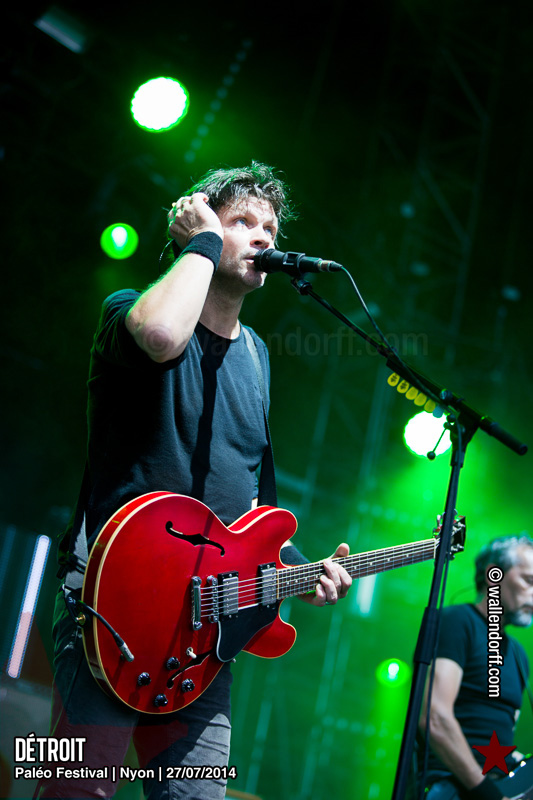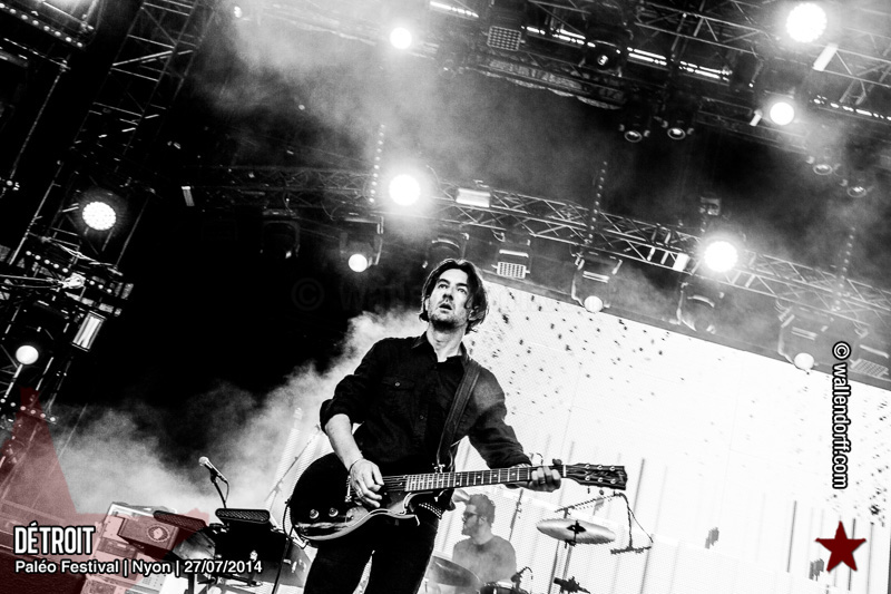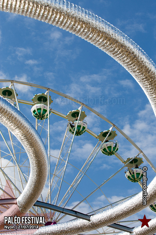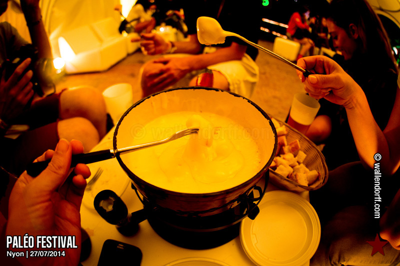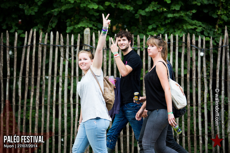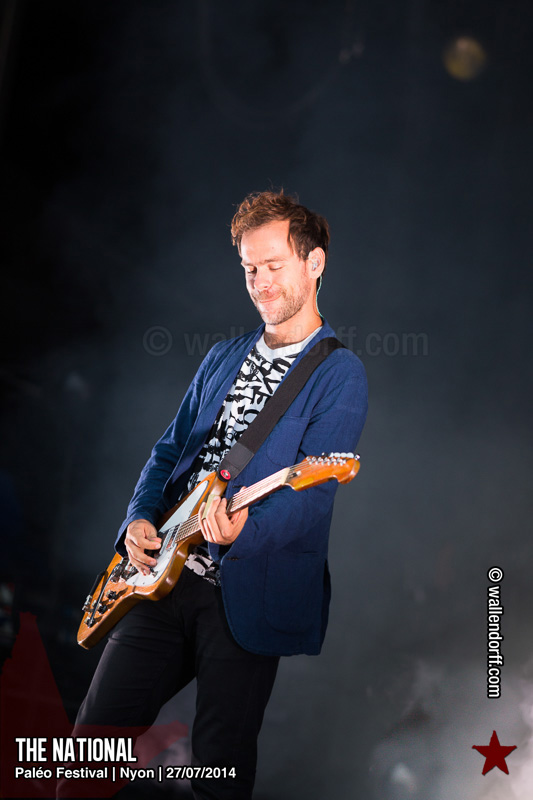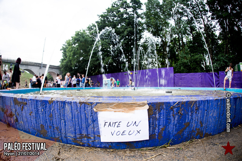 Le dimanche est toujours un jour à part. On vient plus tôt, l’ambiance est (encore) plus détendue et on traîne plus volontiers entre les concerts. Tinariwen a quelque chose de magique. Curieusement, Détroit se contente des Arches pendant que The National squatte la grande scène. Quoi qu’il en soit, Détroit ne déçoit pas et The National fait du National. Je sors de la fosse avec deux belles photos d’intention [ces photos qu’on voit mais qu’on ne peut pas prendre, pour une raison ou une autre. Elles sont expliquées dans ce lien, mais, honnêtement, je ne suis pas sûr de comprendre mon propre jeu] de Matt Berninger ; l’une quand il décide de ne pas renvoyer du pied le ballon Migrol que le public vient de lui lancer [il le jettera au lieu de ça en côté de scène, ce qui m’a fichtrement déçu] ; l’autre après la fin du troisième titre, alors que je m’apprête à rentrer dans le tunnel et qu’il vient pile à ce moment se mettre les bras en croix en bord de scène. Moche. Retour aux Arches, où Woodkid, attendu dans une ambiance électrique, lâche un set impressionnant. Puis le feu d’artifice, que je vois enfin dans de bonnes conditions après les loupés de 2012 et 2013. Placebo débarquent aussitôt, sans prévenir. Deux titres vite expédiés, et tout le monde au bar. Ce groupe vieillit mal. Paléo, lui, finit bien, comme toutes les bonnes aventures : dans la bière, dans les rires et dans la fondue.