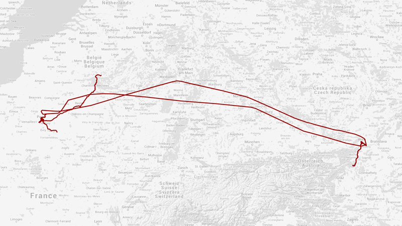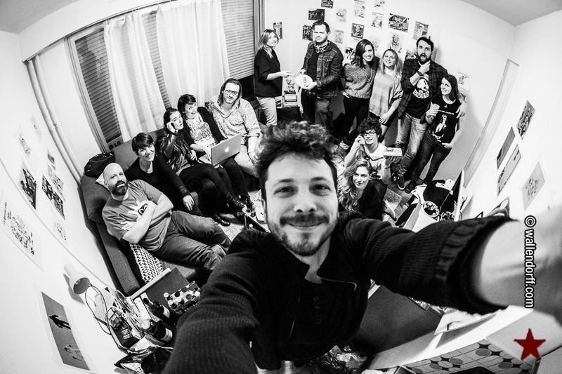Un graffiti, un concert, un balcon, des fleurs, un soirée à haute densité, une nuit au canal, un concert, des fleurs, une grosse saucisse, un beau chapeau, une soirée à haute densité, un concert, un avion, une montagne, un nez, un bonhomme de neige, un pape, un métro, des bières, un café ou deux, des trams, un bar, un avion, une dernière soirée et 3 279 km de plus au compteur. Février 2015.