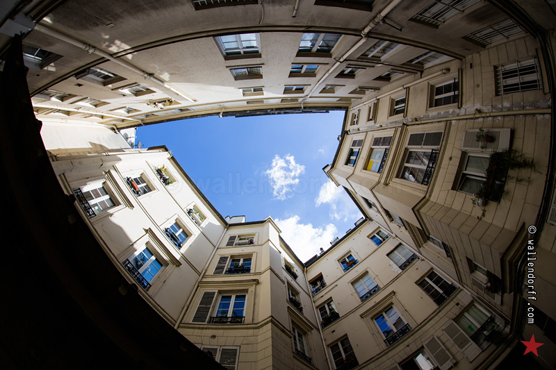 Mon jeu préféré dans Paris – et ailleurs – est de me glisser dans les cours intérieurs à la première occasion. Il faut être prompt à réagir devant la porte ouverte, savoir s’engouffrer dedans sans hésiter, marcher d’un pas décidé, tout visiter l’air soucieux, prêt à répondre « je viens voir madame Ragusin au 5e gauche, escalier C » à l’importun qui viendrait demander ce qu’on fait là – tout en espérant n’avoir à faire à monsieur Brabambois du 5e gauche, escalier C – et, plus dur, prendre ses photos de courette avec l’air sérieux de quelqu’un-qui-n’est-pas-un-touriste-du-tout. J’appelle ça des parties de sonnettes. C’est très drôle, comme jeu. Ça réserve parfois des surprises, comme ces arbres de l’avenue Junot, le lampadaire solitaire de la rue La Fayette, son cousin de la rue Durantin, l’escalier de la rue de Turenne, l’horloge de la rue Buffon, le garage du passage Lhomme ou le jardin du quai de Valmy.