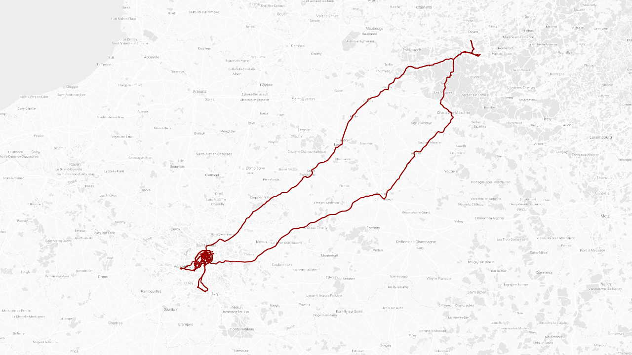Une friche, un concert, un ananas, un chat prénommé Maréchal-Ganache, un concert, un concert, une machine à écrire Hermès modèle 1942 dans un bois, une vitrine, une vitrine, un numéro, un graffiti, une belle paire de fez, un quai, deux toutous, une photographe en cage, une belle rampe, des photographes en cage [d’escalier], une tour, un campus, un amphitéâtre, une ruine, une fille, une cérémonie, des ballons qui volent, un restaurant, une numéro, des lampions qui flottent, un numéro, un concert, un concert, un numéro, un décollage de fusée, 40 ans de radio, un concert, une toilette, un concert, un concert, un chat prénommé Maréchal-Ganache, une grosse église, un anniversaire, des gâteaux, un concert, un concert et 1 431 km de plus au compteur. Novembre 2016.