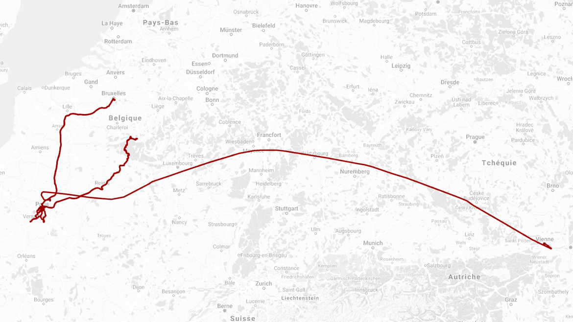 Un musée, une place, un concert, une expo, un parc, une passerelle, un numéro, une pizza, un concert, un train, un numéro, une gare, un hommage, une pizza, une vitrine, une passerelle, un couple, une station, une tour, une station, un escalator, un concert, une session, un concert, un plafond, un aftèreshow, une inauguration d’anniversaire, un quai, une affiche, une lune, une station, un ours, une session, un chat prénommé Échalote, un nuage, un concert, une porte d’embarquement, un avion, un sapin, un café, un escalier, un mur, une vitrine, un couloir, un lama, un vin chaud, un métro, un marché de Noël, un arbre, un hôtel de ville, un bar et 3 247 km de plus au compteur. Novembre 2018.