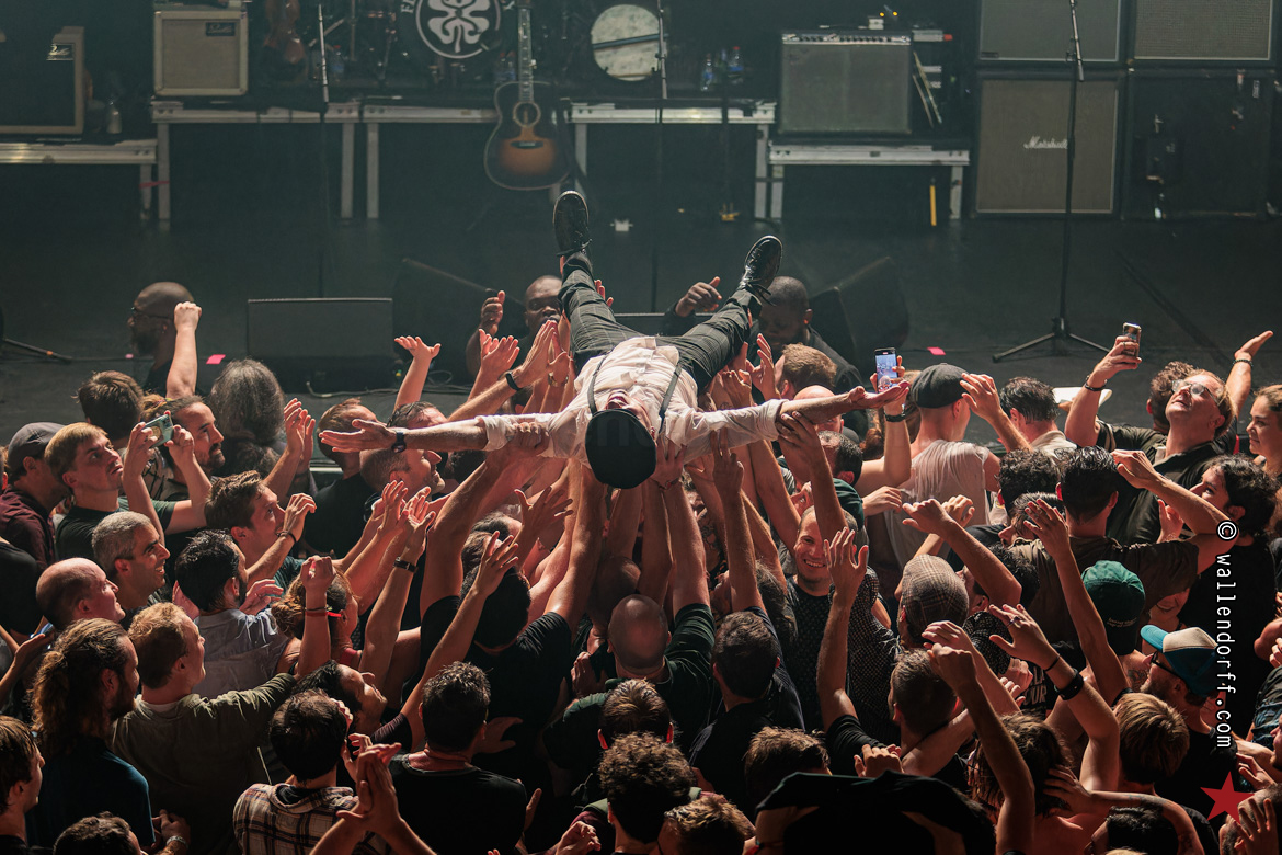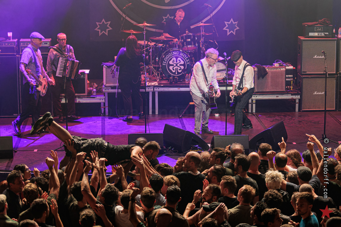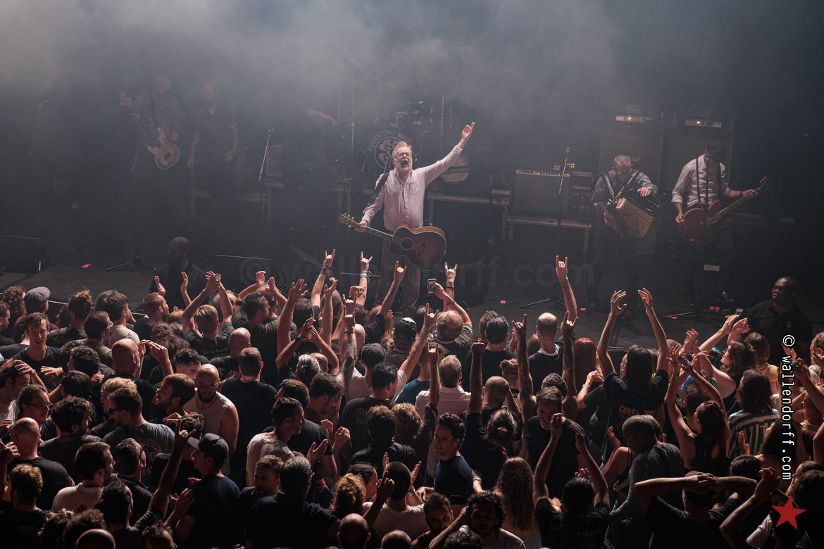 Quatrième Bataclan de Flogging Molly, après 2005, 2011 et 20171… et rien n’a changé. C’est toujours la même tempête, les mêmes gigues populaires, les mêmes bras levés, la même bonne humeur générale, la même pluie de Guinness, la même fougue et la même odeur de chien mouillé à la fin du show.