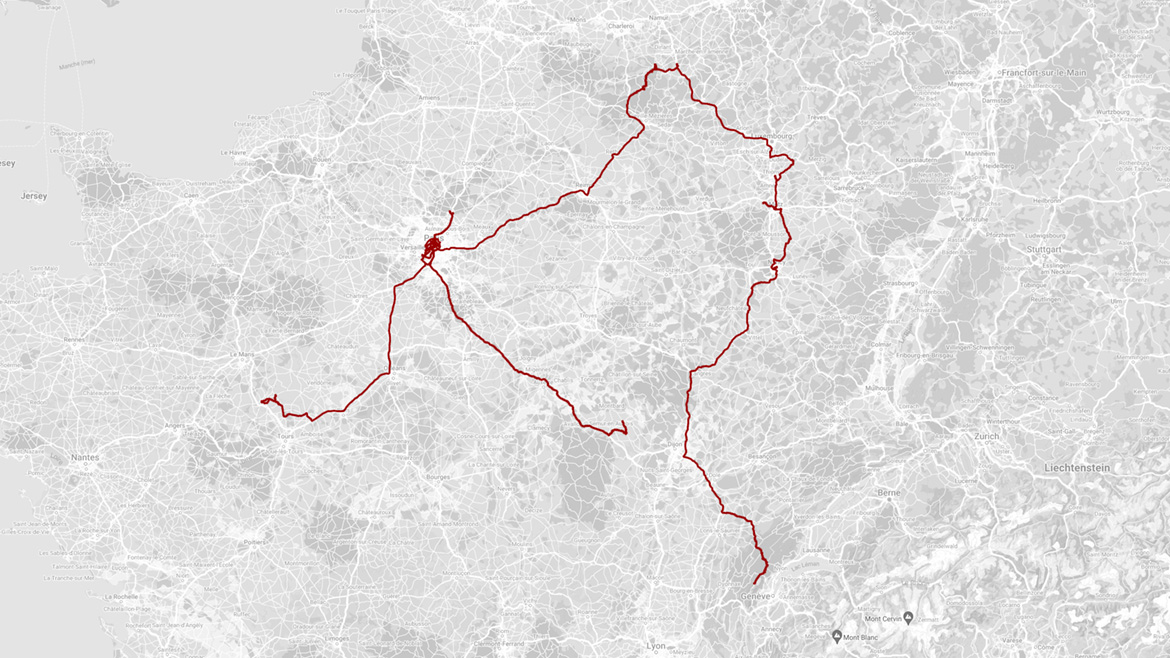 Un chat prénommé Kébab, un panneau, un dinosaure, un feu à l’âtre, un plaid, un jardin, une ombre, une pelouse, un arbre, une maison, un coucher de soleil, un mouton, un champ, un crépuscule, un métro, un coussin, un train, un journal, un nuage, un pigeonnier, un clocher, la dernière partie de Scrabble, une tour, un test à l’aveugle, un escalator, un sapin de Noël, un piéton, un RER, une vitrine, une vitrine, des sapins de Noël, un disquaire, une final de chant, un trophée, une cathédrale, un opéra, un métro, un spectacle de standupe assis, des dinosaures, un chien affamé, une demande en bonne et due forme, un sapin de Noël, des vélos morts, un sapin de Noël, des ampoules, un gros nez, un café, un enterrement, une montagne, un réveillon, un chat prénommé Albert, un coucher de soleil, un marché de Noël, un cimetière allemand, un morse, des animals, un petit truc mignon, un poisson, un hôtel de ville, une gare, un miroir, un numéro, une frontière suisse, un apéro au comté, une veste verte, un apéro, de la neige, des sapins, un tas de poils, des flocons, un écriteau, des sapins, un avion, un réveillon et 2 651 km de plus au compteur. Décembre 2024.
