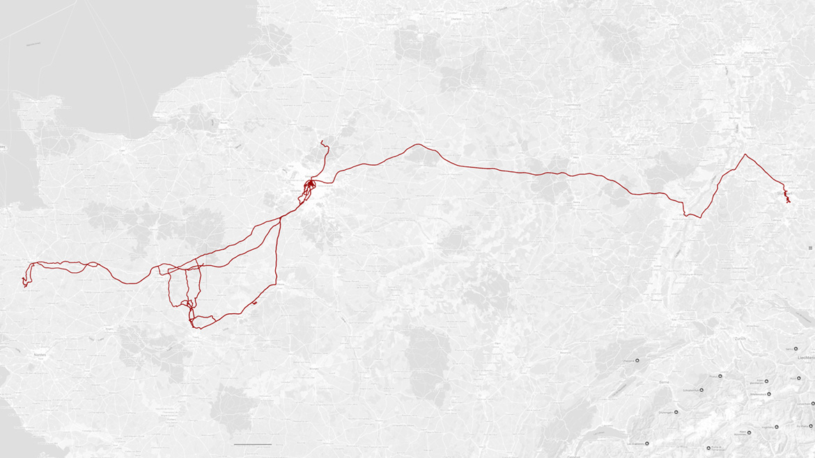 Un métro, un coucher de soleil, une tour en bois, une grosse boule, une tour en fer, un coup de balai, un parapluie, une sieste, un bi(f)tek, une ruine de jour, un château, un coucher de soleil, une page de bouquin, une éclipse de lune, un CNPE, une enseigne, une cour de nuit, une passerelle, des pots en brique, une sieste, un chat prénommé Bob, un chat prénommé Cassoulet-Couscous-Kébab, un choual, une promenade, une croix, un banc, une terrasse, un anniversaire, une ruine de nuit, une station-essence, un rayon de soleil, un manège, un métro, un quai de gare, un reflet, un TER, un coucher de soleil, un chien avec chauffeur, une table, un mariage, une brume matinale, une promenade, une table, un quai de gare, un TGV, un métro, un anniversaire, un reflet, un restaurant, un TGV, une gare, encore une gare, une troisième gare, un arbre, un tramway, un scotère, une maß de bière, un bisou, des autos-tamponneuses, une promenade, un avion, un autre avion, encore un avion, un poteau à avions, un avion, un avion, un avion, un quai de gare, une ombre portée et 4 884 km de plus au compteur. Septembre 2025.